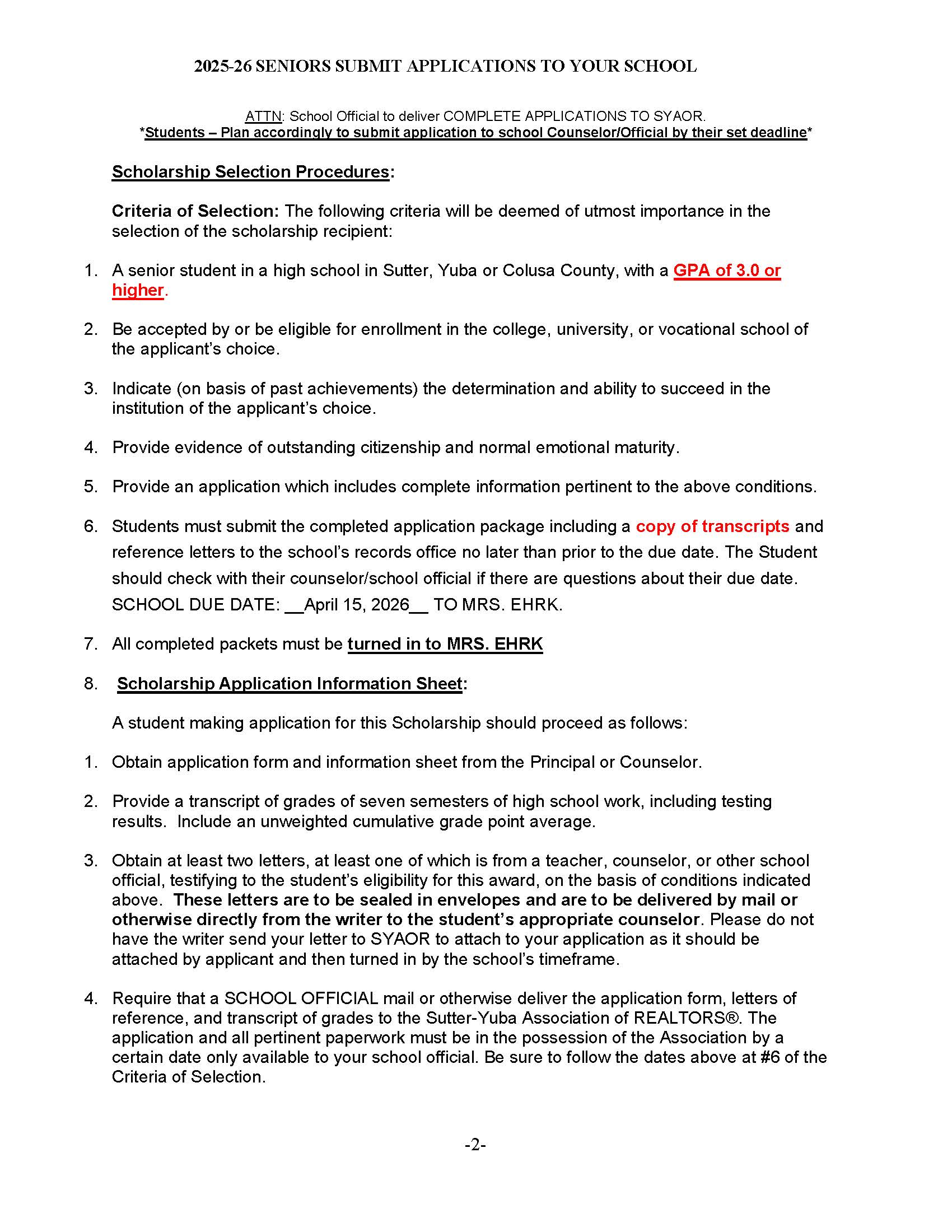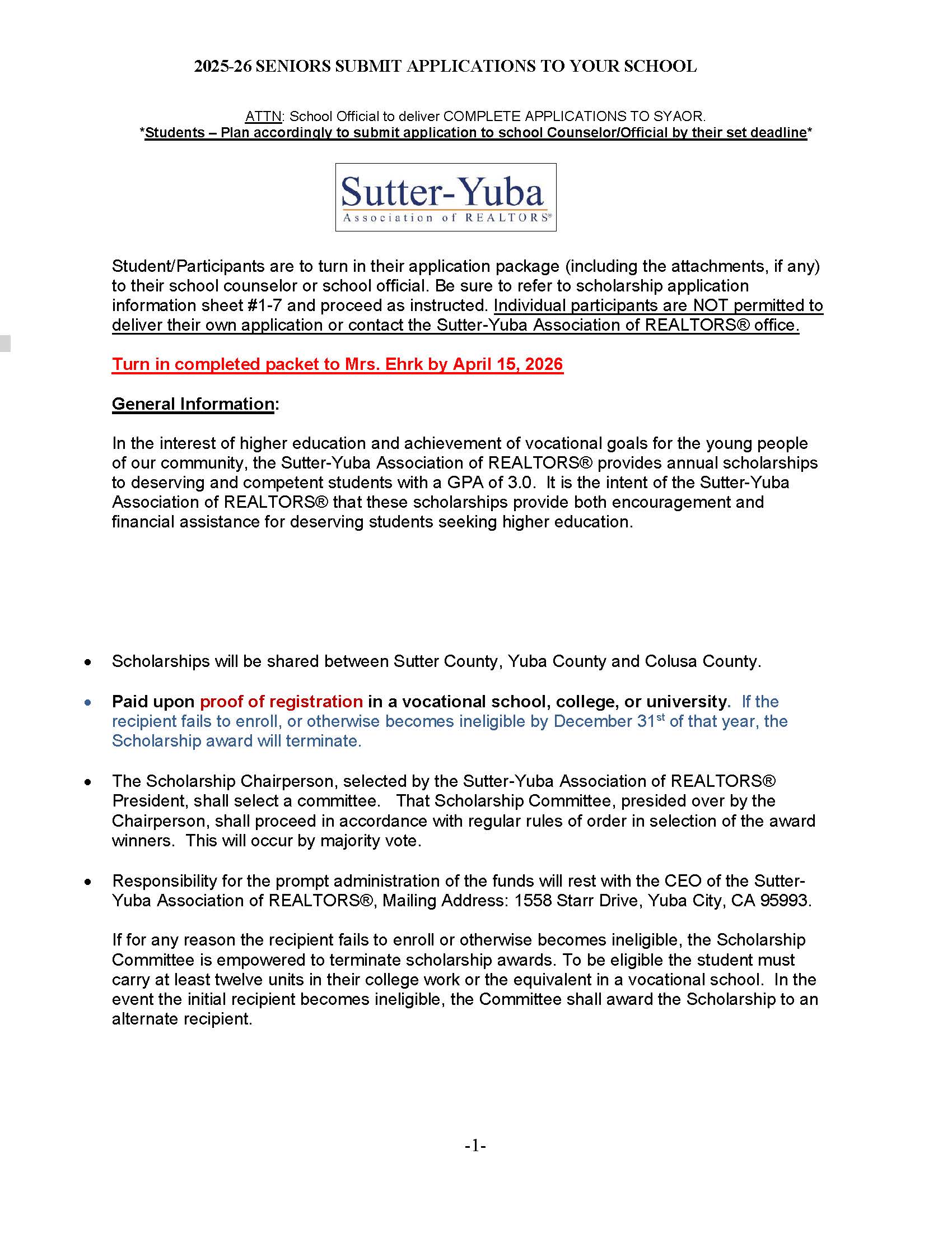 - Sutter-Yuba Realtors Scholarship