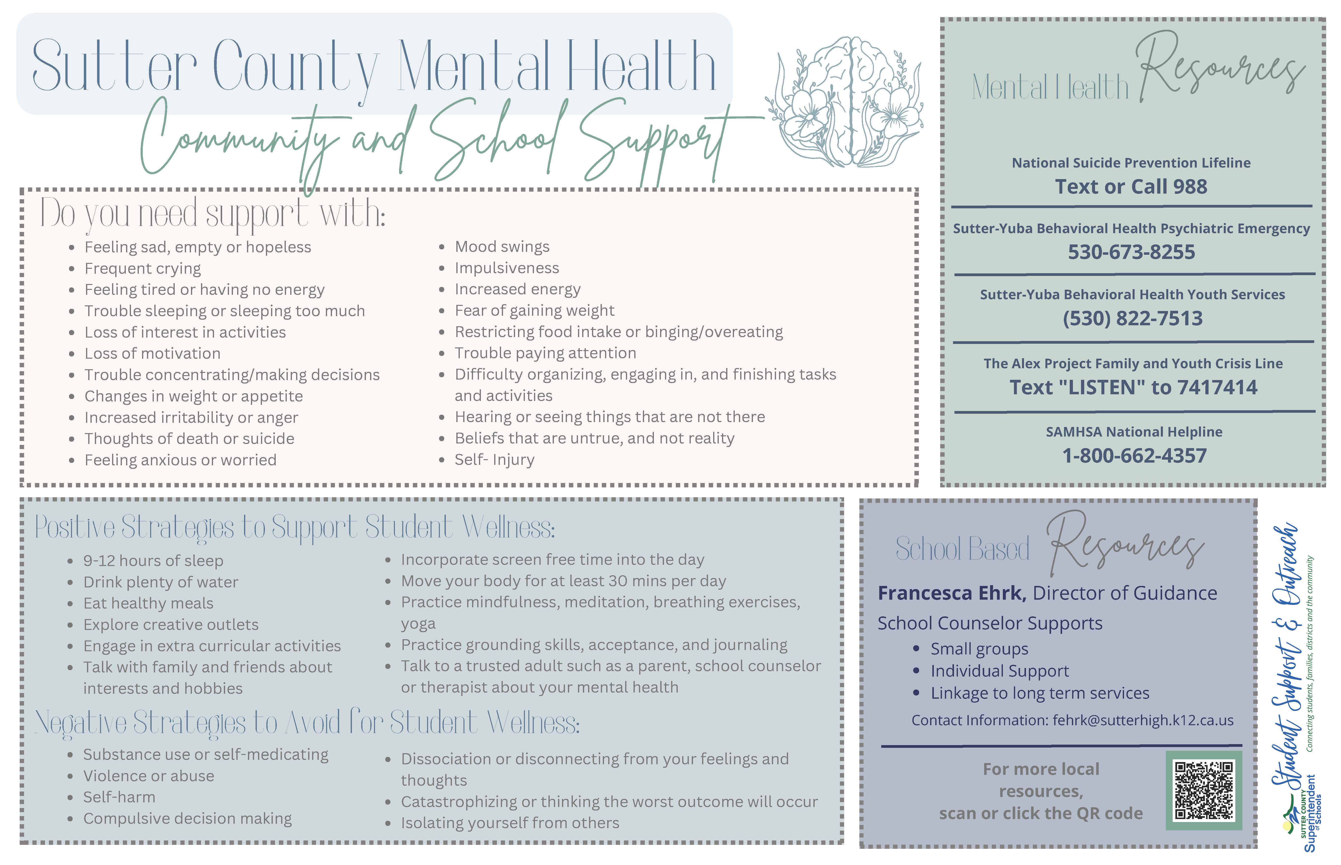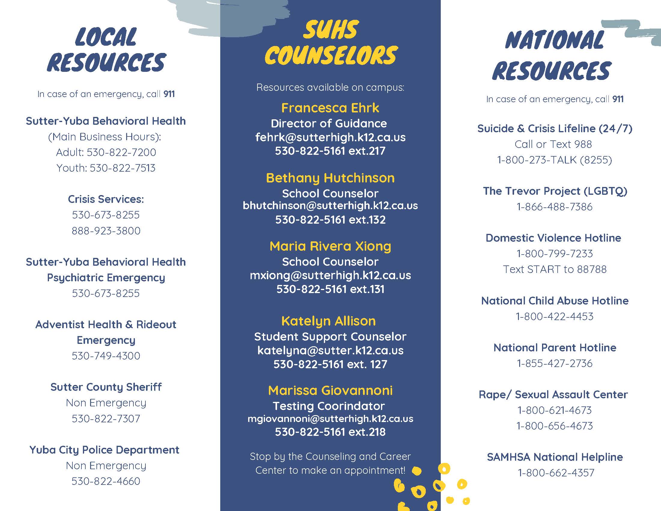 IN CASE OF AN EMERGENCY: CALL 911 Main Business Number: (530) 822-7200 24-HOUR PSYCHIATRIC EMERGENCY SERVICES (CRISIS SERVICES): (530) 673-8255 or Toll Free (888) 923-3800
